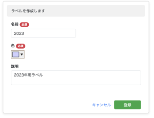 ④ ラベルの登録画面が表示されます。名前・色を設定し、「登録」をクリックします。