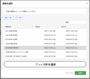 ⑥ 開催を紐付ける画面が表示されます。紐付けたい開催を選択し、「更新」をクリックします。