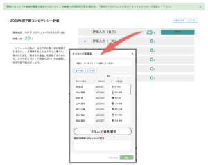 「開始する」をクリックすると、対象者の画面に該当の評価が表示されます。