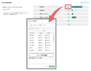 プロセス毎の人数をクリックし、該当のメンバーを確認できます。また、対象者にメッセージを送ることができます。