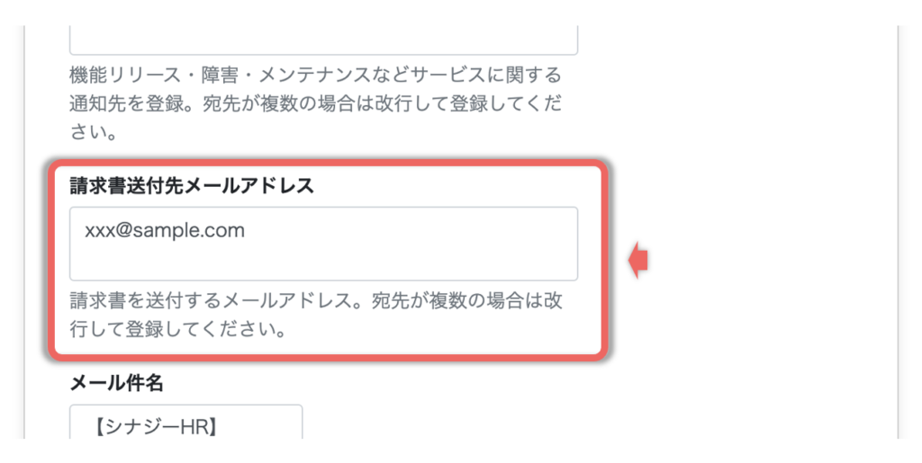 請求書送付先のメールアドレスを指定することができます。