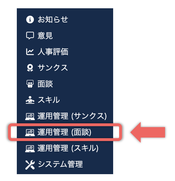 画面上部ヘッダー右のメニューから、「運用管理(面談)」をクリックします。