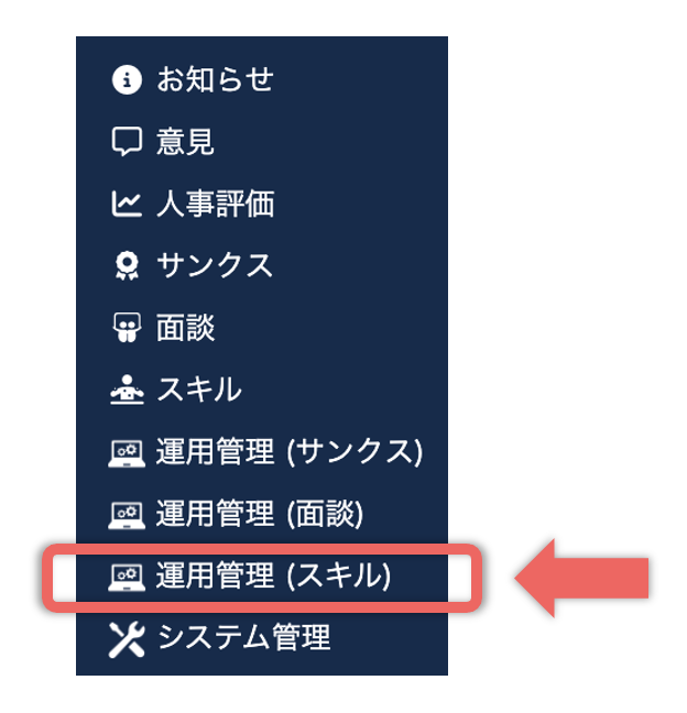 ※スキルツールの運用管理者のみ、該当のメニューが表示されます。