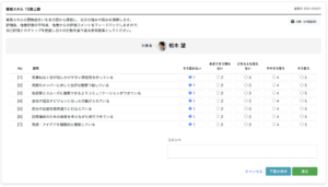 自身の評価を行う画面が表示されますので、自己評価を行い、「提出」をクリックします。