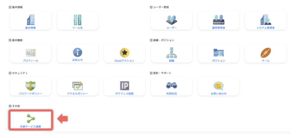 システム管理画面のその他の「外部サービス連携」をクリックします。