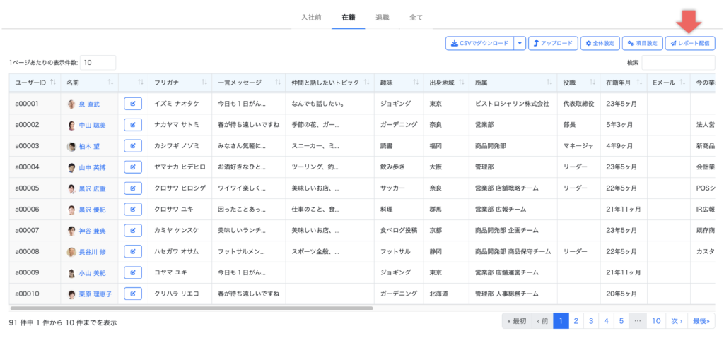 画面右上の「レポート配信」をクリックします。