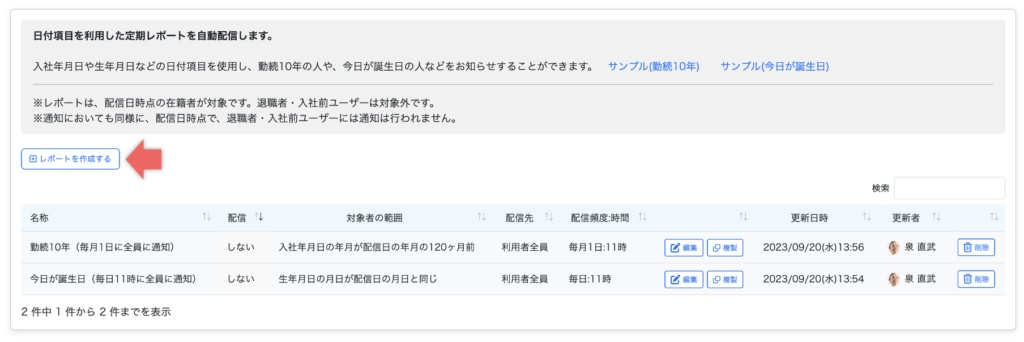 日付項目を利用した定期レポートを配信する