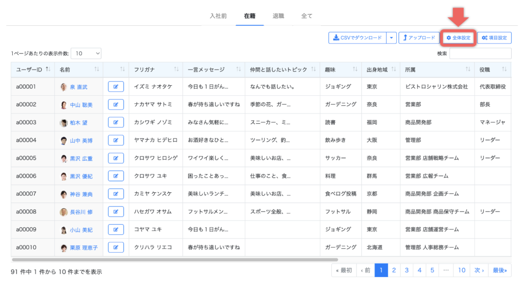 ④ プロフィールの全体設定画面で、表示件数を変更